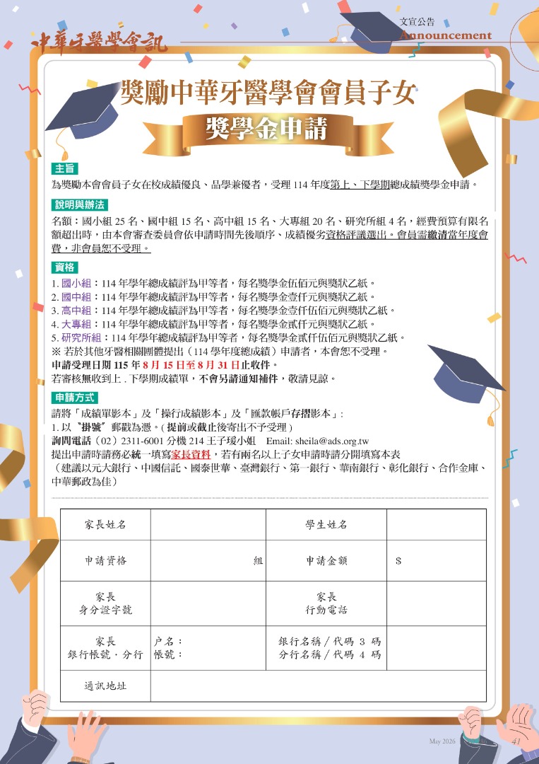 📢【會員子女獎學金申請簡要】